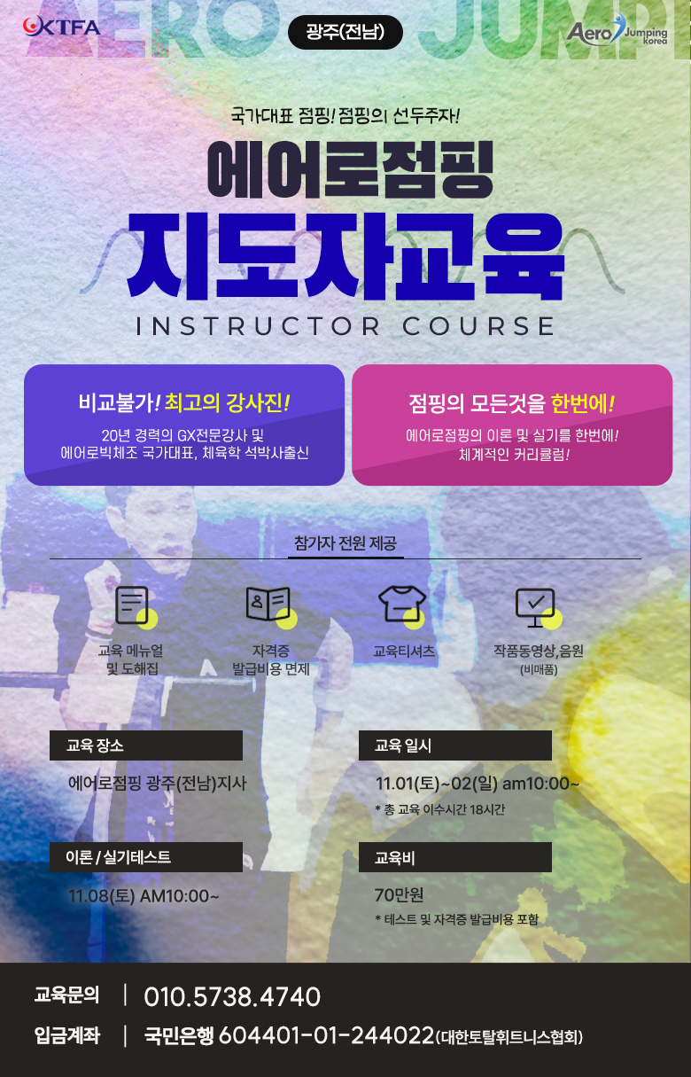 ★Aero Jumping★ 2025. 11.01(SAT) ~ 11.02(SUN) 에어로점핑 전문지도자 과정 개최(광주)